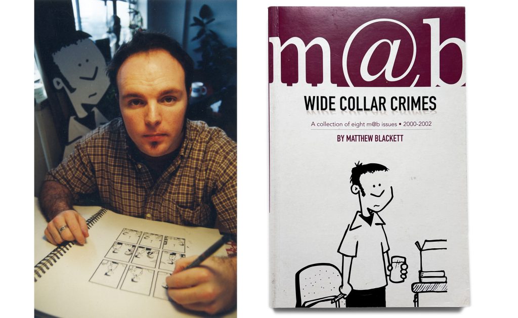 Matthew began self-publishing his comic m@b in 1998, handing out photocopied and hand-folded issues to his friends and work colleagues. While the beginnings were modest with a print run of maybe 50 copies, the comic quickly turned into a second career. After four years of publishing, he compiled the 15 issues released from 1998-2002 into a cohesive collection called Wide Collar Crimes. He partnered with the organizers of the inaugural Toronto Comic Arts Festival (TCAF) to share the kickoff of the event with the launch of his book. Over the next two years, Matthew went on two promotional book tours across Canada and the United States, appearing at numerous comic and alternative press festivals as a featured comic artist discussing the his unique approach to independent publishing and the success of Wide Collar Crimes.