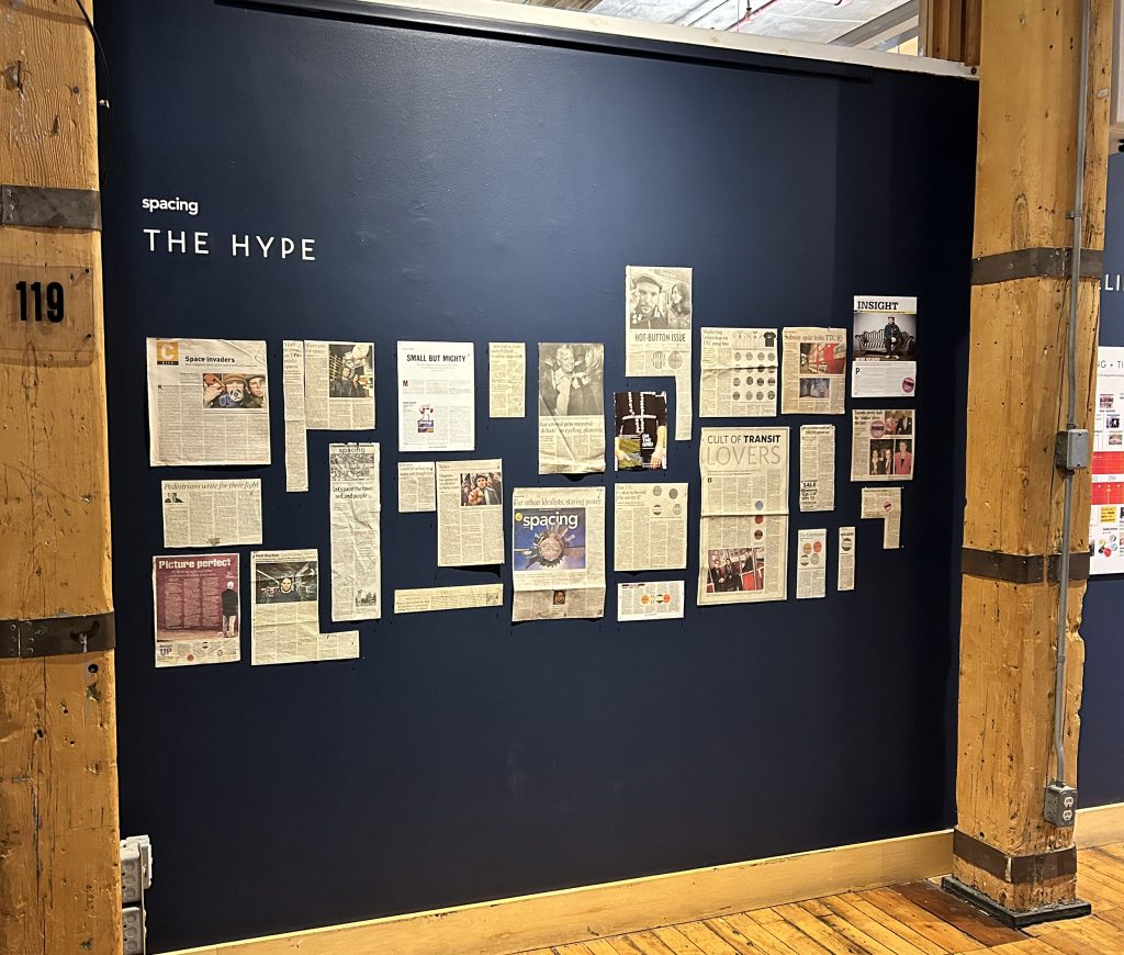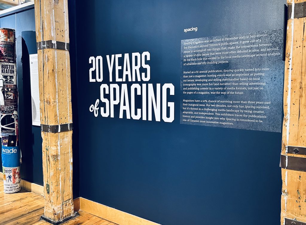 In 2023, Matthew designed the space of Urban Space Gallery for the Spacing 20th anniversary exhibition. It consisted of 10 wall panels of curated items from Spacing‘s archives that helped tell different stories from the magazine’s history.